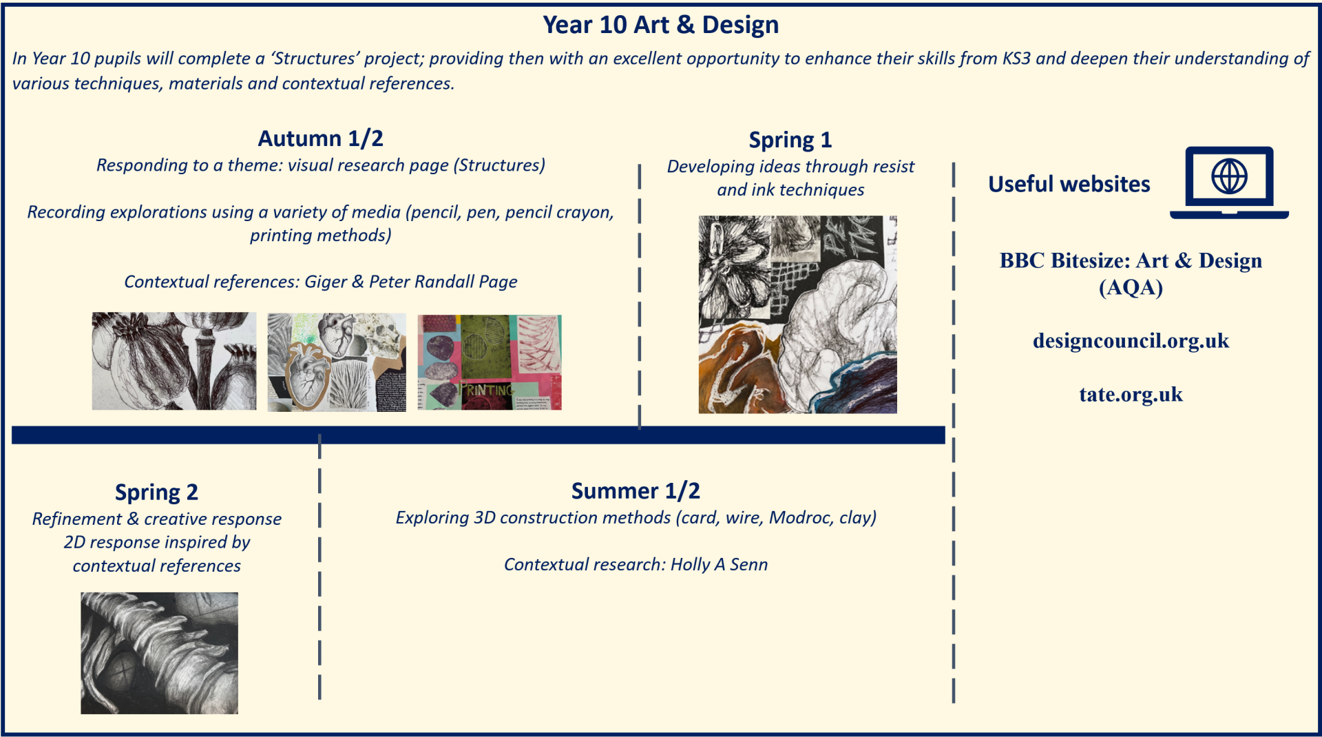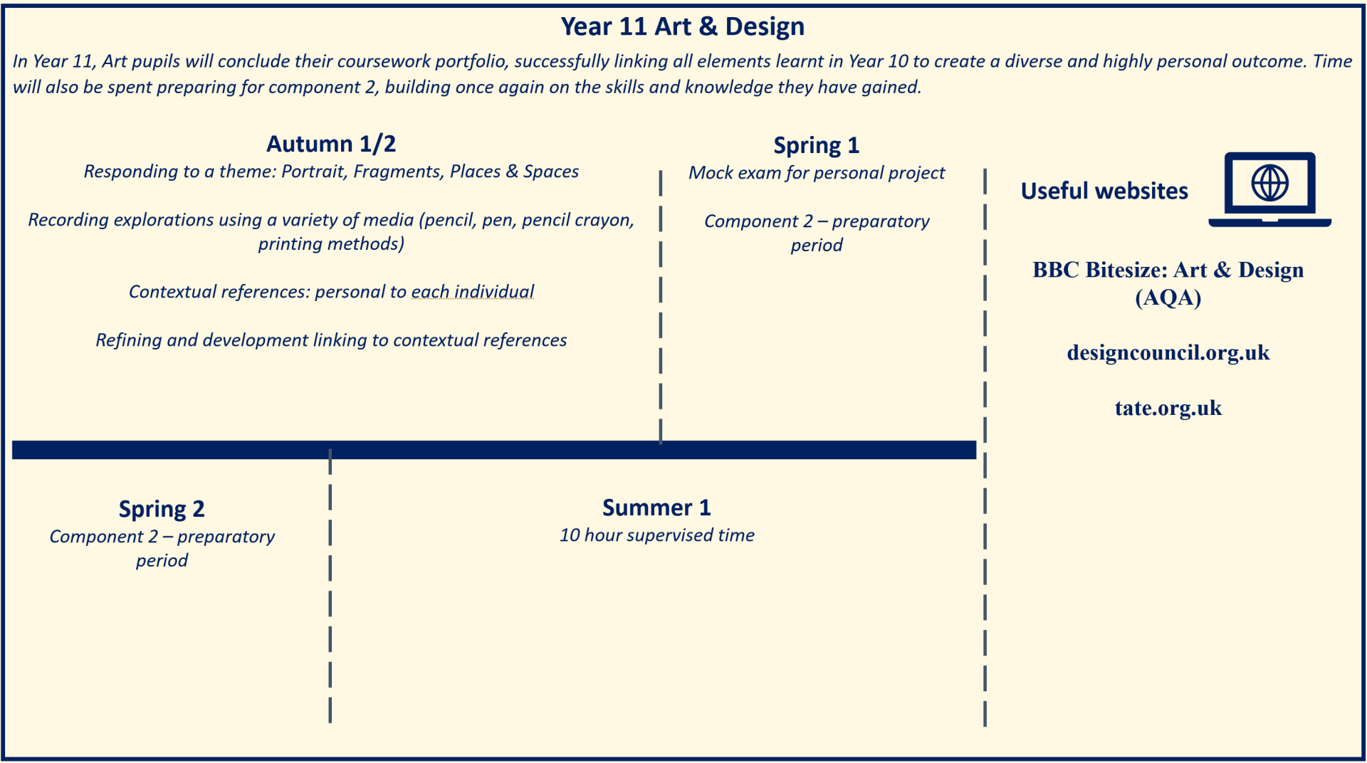 Our Key Stage 4 provision allows for the development of specialist skills and to equip all pupils with the knowledge and transferrable skills necessary to develop creative and inquisitive young minds; ready to embrace an Art/Design foci Post 16.