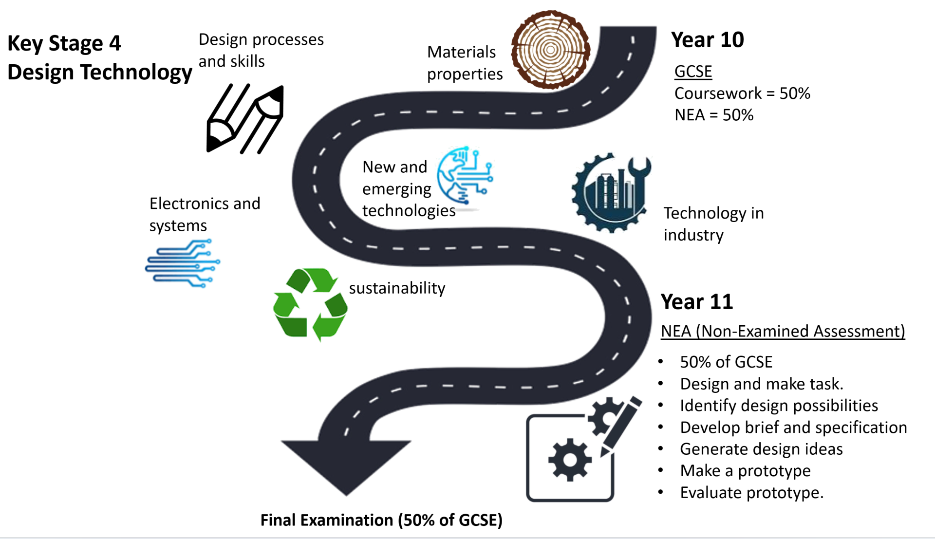 In Design & Technology pupils experience a broad curriculum each year with a range of projects encompassing Food, Graphics, Product Design, Textiles & CAD/CAM.