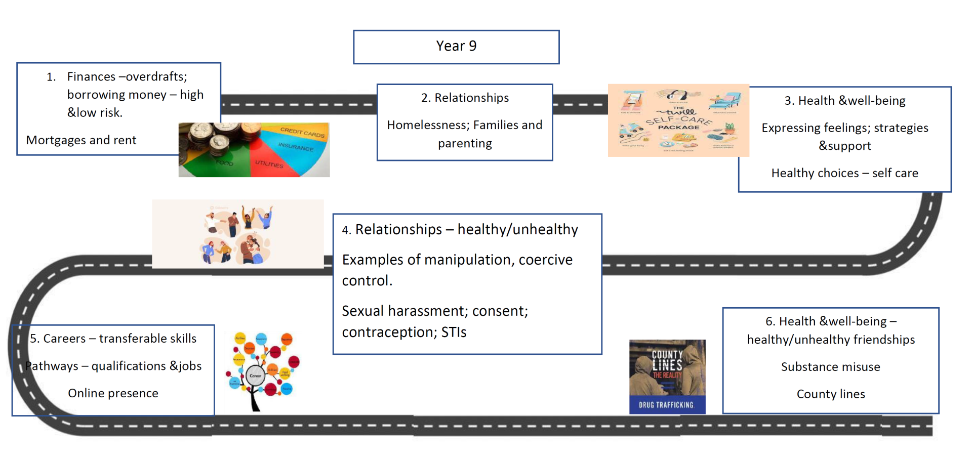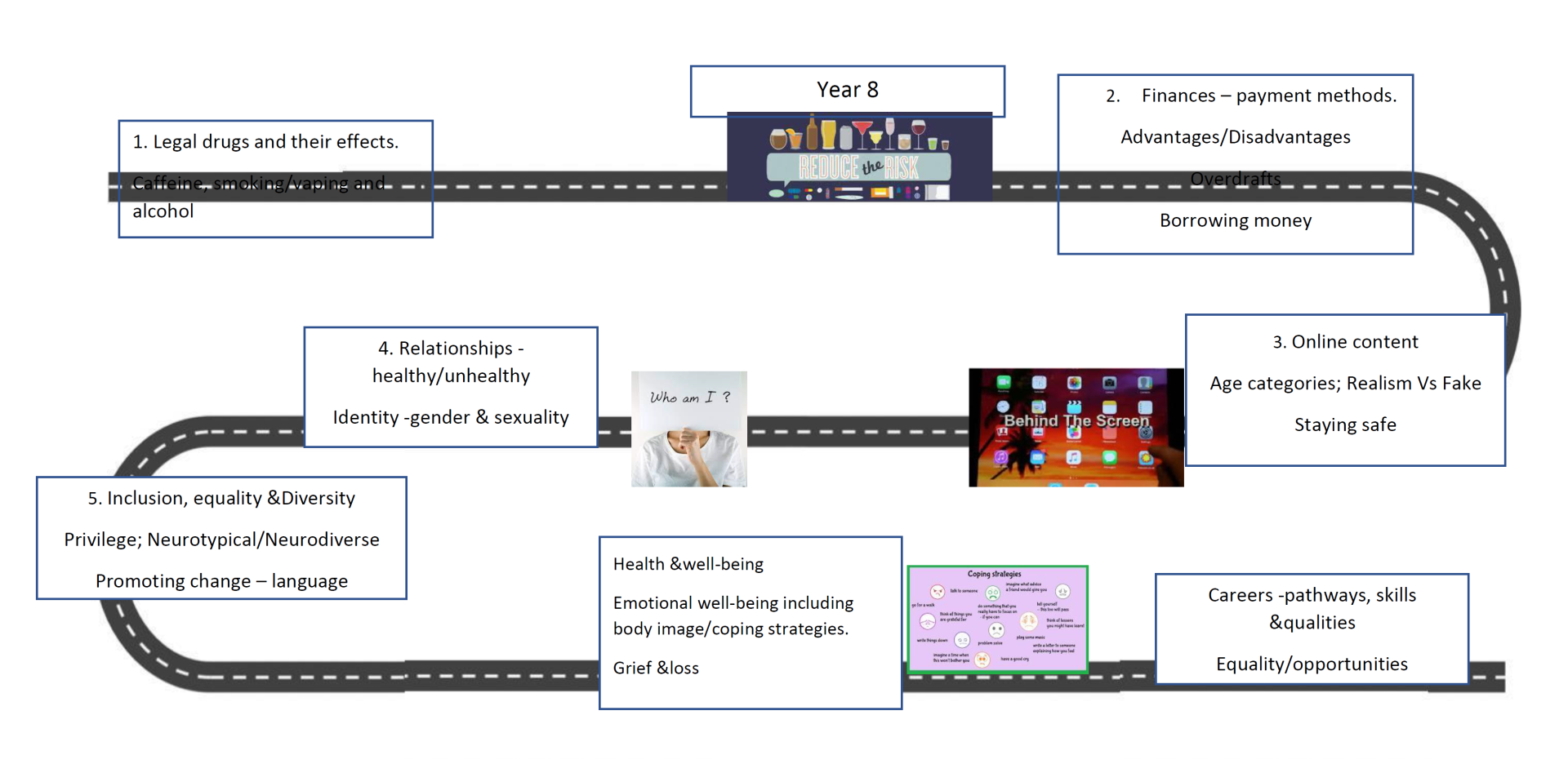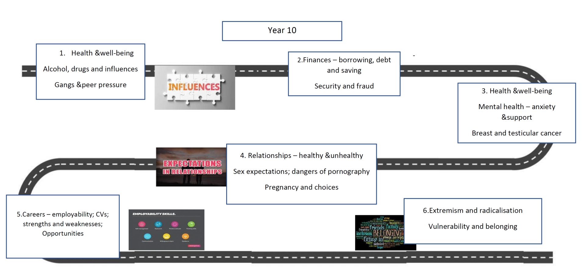 - To develop clear pathways from Year 7-11 that focus on a range of topics that are age appropriate.